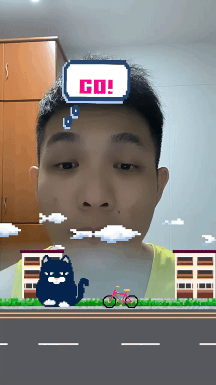 inspired by Flappy bird, this 6-bit eye-blinking Instagram filter becomes a fun game with friends as they can compete with their high scores.